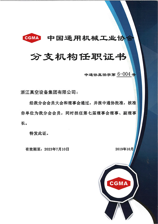 中國通用機(jī)械工業(yè)協(xié)會(huì)會(huì)員證書
